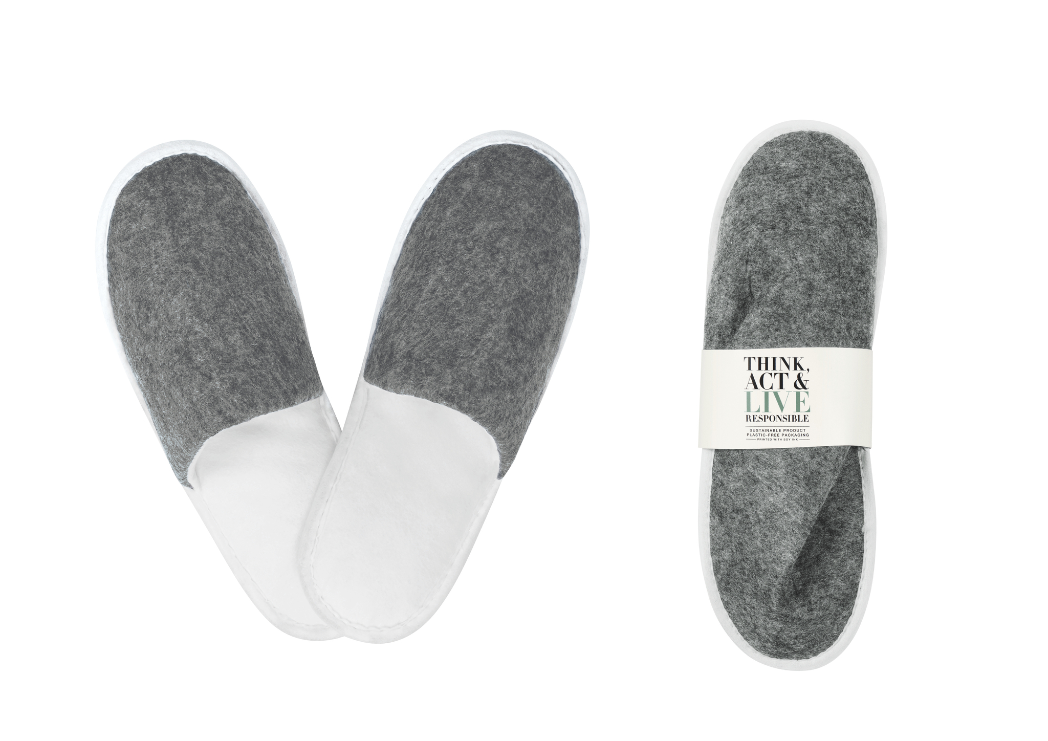 The slippers collection of Think, Act & Live Responsible was designed with the four principles of responsible living: rethink, refuse, reuse & recycle.